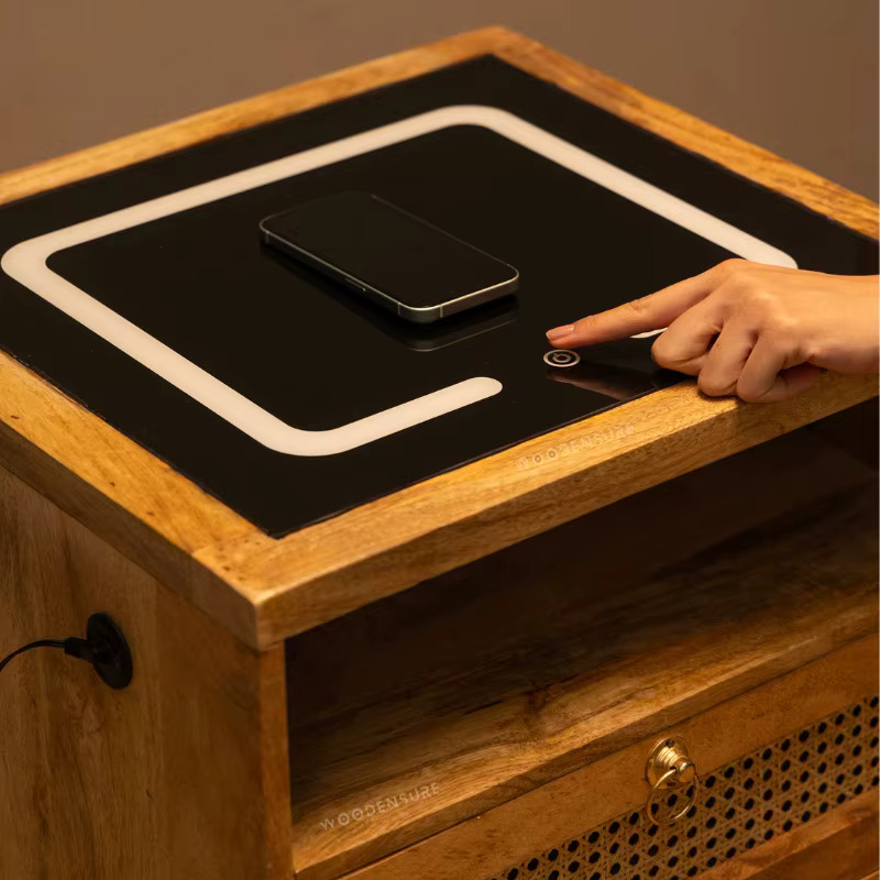 Bring smart functionality and refined style into your bedroom with the Modern Wood Nightstand from Buy It Shiloh. Thoughtfully designed for today’s connected lifestyle, this multifunctional piece combines natural wood craftsmanship with innovative features to enhance both convenience and comfort. Whether placed beside your bed or used as an accent table, it delivers a seamless blend of elegance and practicality.